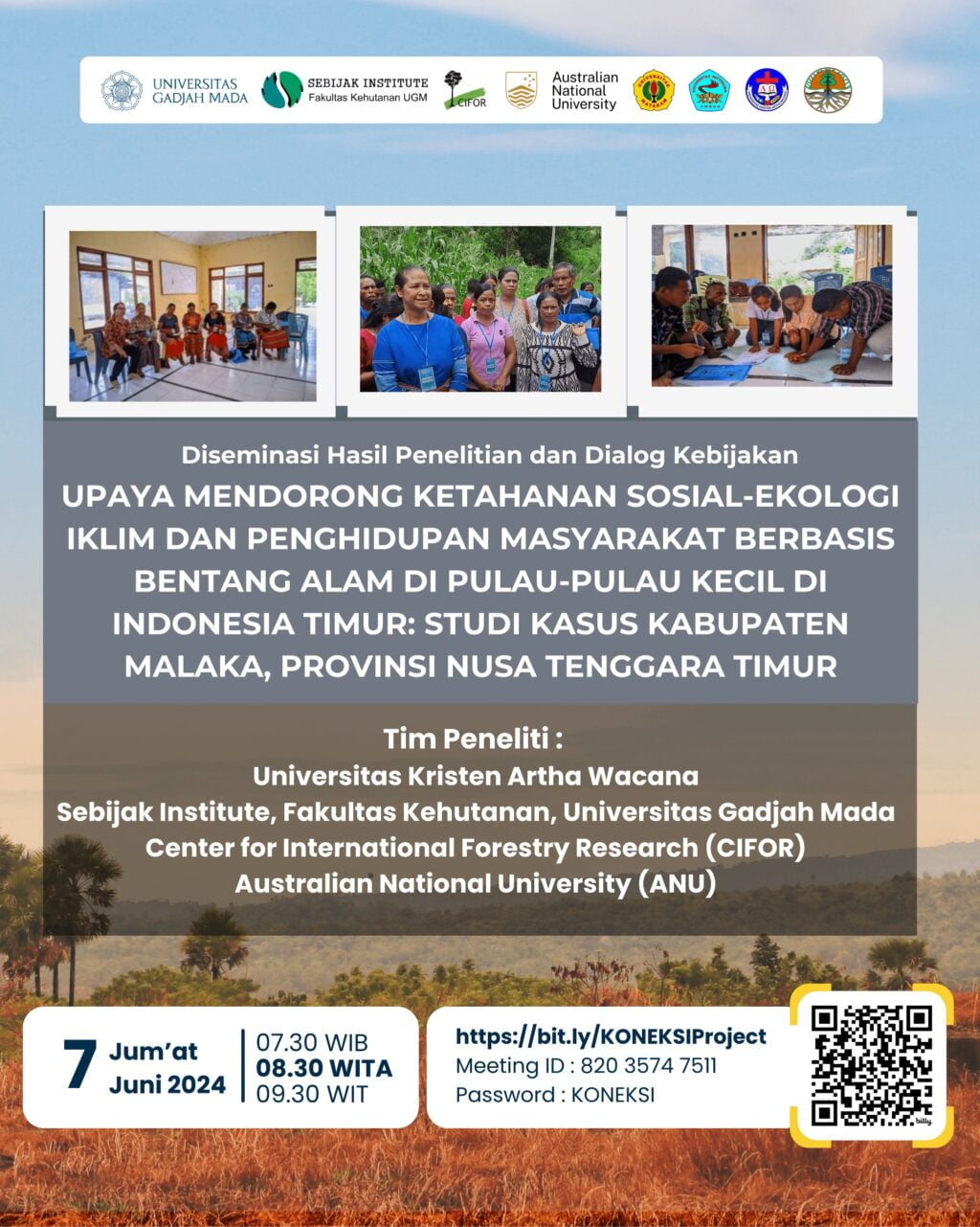 Diseminasi Hasil Penelitian & Dialog Kebijakan: UPAYA MENDORONG KETAHANAN SOSIAL-EKOLOGI IKLIM & PENGHIDUPAN MASYARAKAT BERBASIS BENTANGAN ALAM DI PULAU-PULAU KECIL DI INDONESIA TIMUR: “STUDI KASUS KABUPATEN MALAKA, PROVINSI NUSA TENGARA TIMUR”