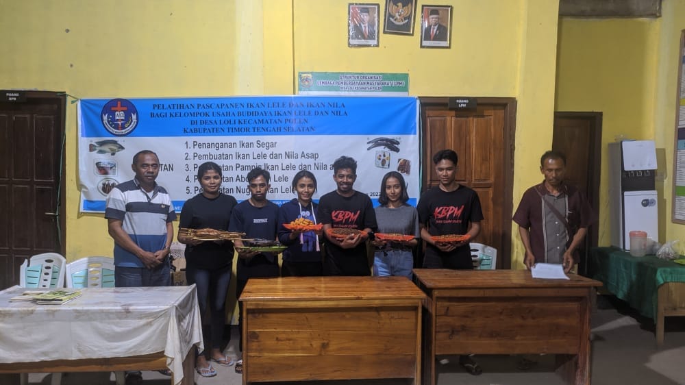 Pelatihan Pasca Panen Ikan Lele dan Ikan Nila bagi Kelompok Usaha Budidaya Ikan beserta Siswa – siswi Kelas 3 IPA SMA Kristen Loli oleh Rektor UKAW Dr. Ir. Ayub U. I. Meko, M.Si. (23/08/2022)