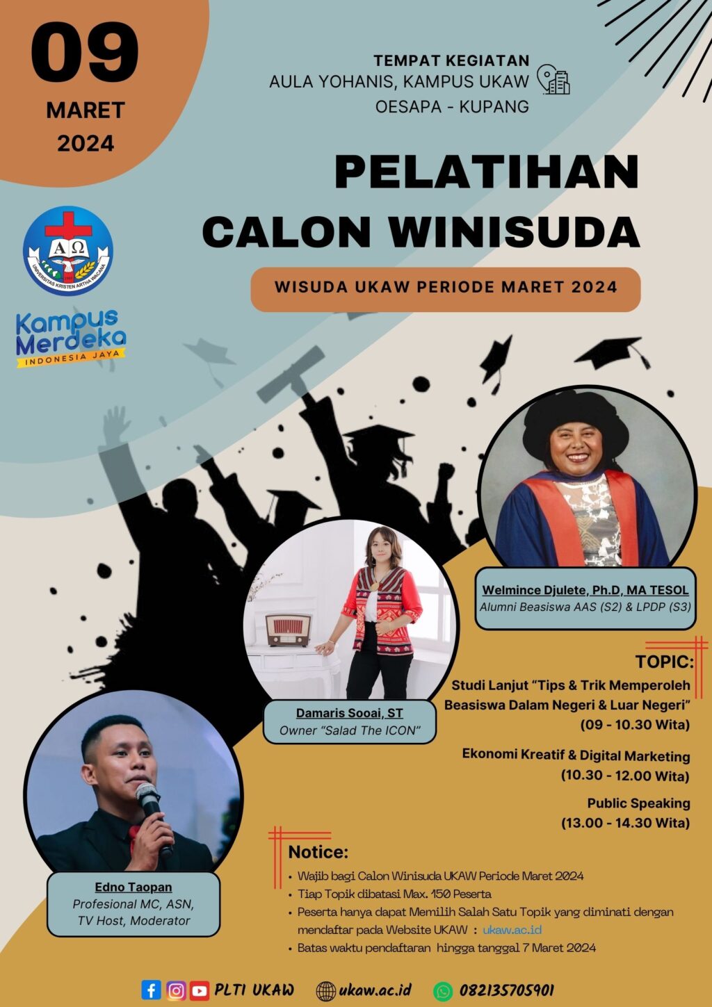 PENDAFTARAN PELATIHAN BAGI CALON WINISUDA UKAW PERIODE MARET 2024 March 2, 2024 1 min read Link Pendaftaran: https://winisuda.ukaw.ac.id/index.php Post navigation Previous Rektor UKAW Kupang Ajak Civitas Akademika untuk Bersikap Rendah Hati dan Tunjukan Kinerja yang BaikNext Tim Program Studi Pendidikan Biologi Berhasil Submit 5 Proposal Program Kreativitas Mahasiswa Tahun 2024 Leave a Reply Cancel replyYour email address will not be published. Required fields are marked *Comment * Name * Email * Website Save my name, email, and website in this browser for the next time I comment.