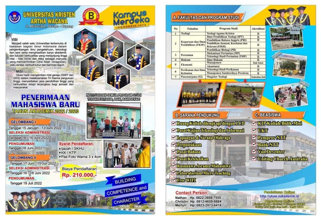 PENERIMAAN MAHASISWA BARU UKAW T.A. 2022/ 2023 February 18, 2022 1 min read Link Pendaftaran Mahasiswa Baru UKAW T.A. 2022/ 2023: https://ukaw.eakademik.id/ukaw/pmb.zul Post navigation Previous Gelar Natal Bersama di Fatukanutu, Ini Harapan Pdt Gustaf Amekan untuk UKAWNext Selamat Memperingati Isra Miraj 1443 Hijriyah Leave a Reply Cancel replyYour email address will not be published. Required fields are marked *Comment * Name * Email * Website Save my name, email, and website in this browser for the next time I comment.